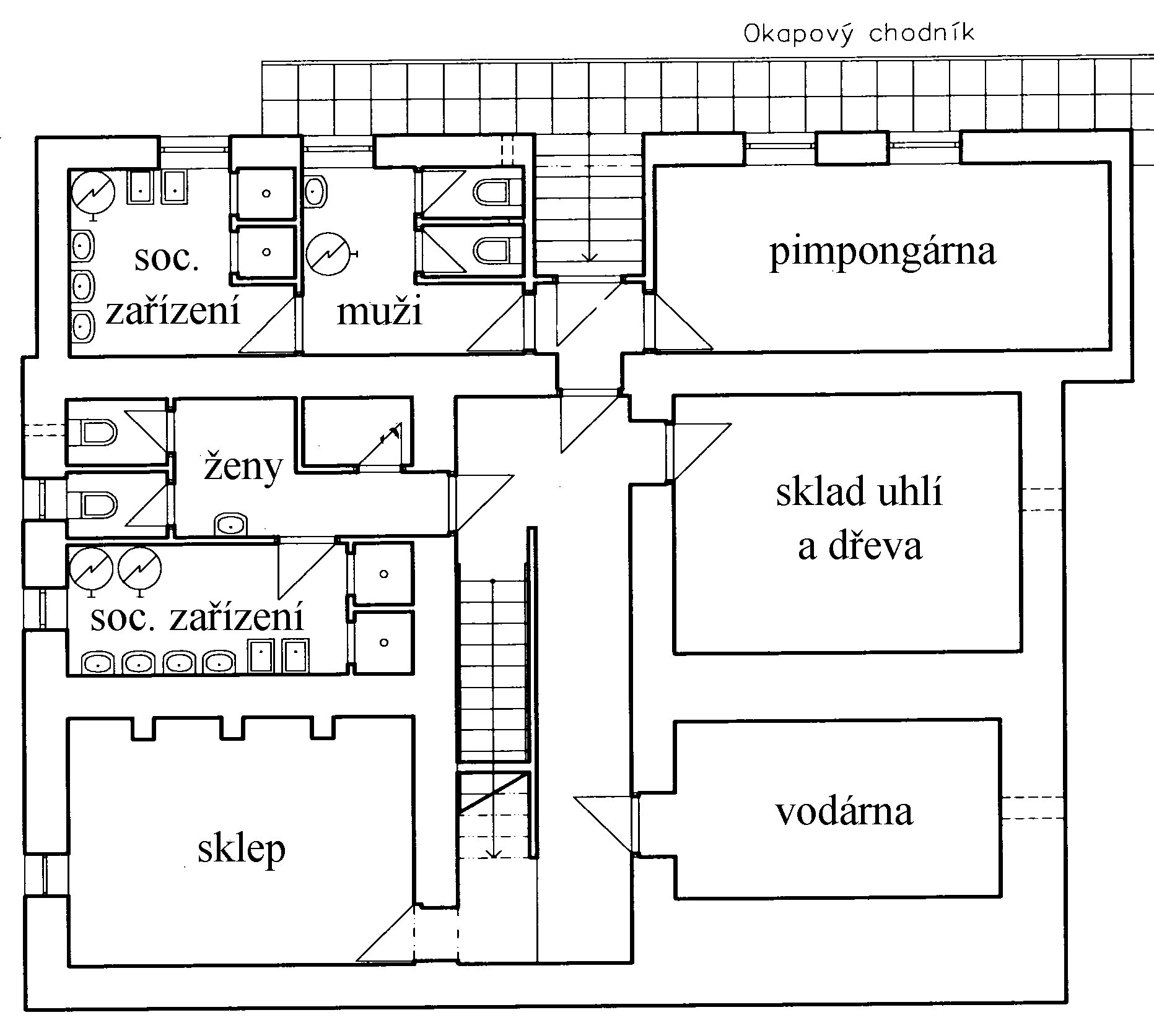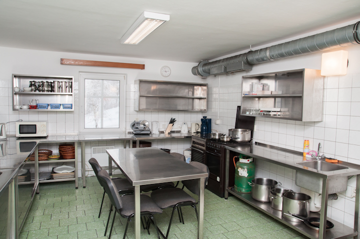 Jídelna, kuchyň a obývák se nachází v prvním nadzemním podlaží. Společná sociální zařízení jsou v suterénu.